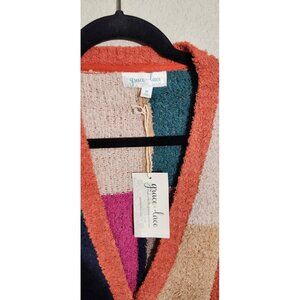 Grace & Lace Cardigan Sweater Womens Medium Multi Color Patchwork Cozy Pockets