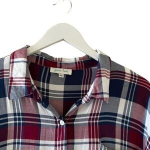 Grace & Lace Viscose Rolling Sleeves Asymmetrical Casual Button-Down Collar Adjustable Cuffs Tailored Traditional Oversized Brushed Plaid Burgundy Navy White Cotton Flannel Long Sleeves Cozy Soft Warm SZ XL # 1630
