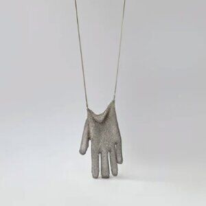 THE MESH HAND BAG FITS YOUR CARDS, KEYS, AIRPODS AND OTHER LOSE ITEMS. COMES WITH AN INTERNAL SEAMLESS KEYCHAIN HOLDER. HIDDEN MAGNET CLOSURES.