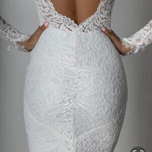 STYLE: Sheath, Boat neck, Backless, Long Sleeve and Floor Length. This gown has a flattering beautiful fit!