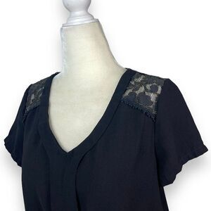 Super cute & versatile LBD dress from Grace & Mila Paris in classic black featuring elegant lace panel detailing at shoulders and back yoke threaded through with subtle metallic gold thread and mini pom-pom trim.