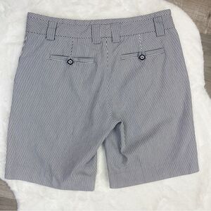 Grace Seersucker Stripe Bermuda Shirt Gray White 4 Stretch Flat Front