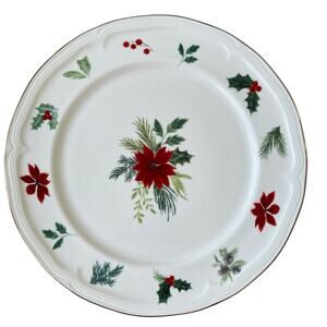 Grace Teaware Christmas Poinsettia Dinner Plates 10.25in Set 4 Holly Berry New