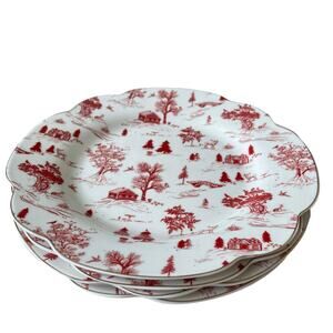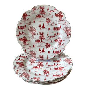 Grace Teaware Christmas Porcelain Salad Plates 8in Set of 4 Holiday Red & White