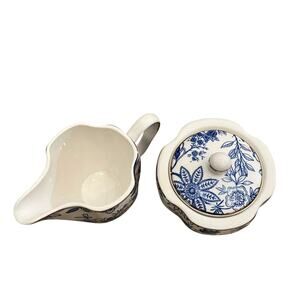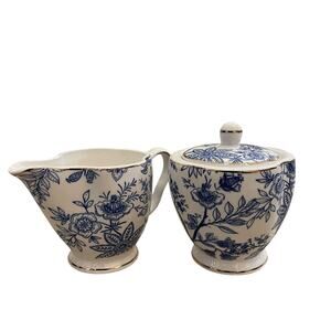 Grace Teaware Fine Porcelain Creamer & Sugar Blue & White Floral Gift Set New
