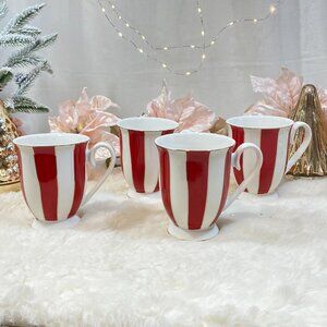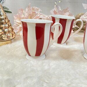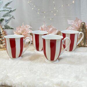 Grace Teaware Fine Porcelain Holiday Red Gold White Stripe Footed Mugs Set of 4