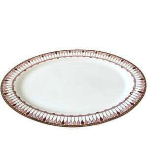 Grace Teaware Fine Porcelain Oval Serving Platter 14x9 Pink Gold Geometric New