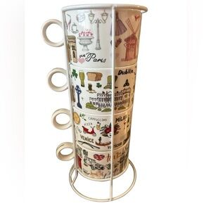 Four stackable Grace Teaware Fine Porcelain Cups with stand