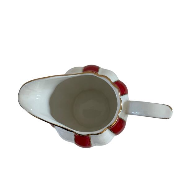 Grace Teaware Fine Porcelain Sugar & Creamer Set Red & White Stripe w/ Gold