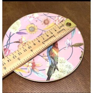 This exquisite Grace Teaware plate showcases a vibrant bird and floral design on fine porcelain. Ideal for adding elegance to your dining setup or as a decorative piece. Its pink background beautifully highlights the intricate details, making it a charming addition to any collection.