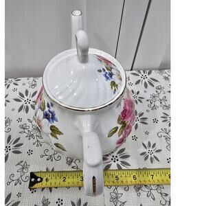 floral teapot, porcelain teapot, cottage core decor, shabby chic kitchen, vintage inspired kitchen, tea party decor, floral serveware, English cottage style, farmhouse kitchen decor, collectible teapot