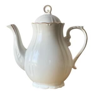 Grace Teaware White Gold Scallop Fine Porcelain Tea pot