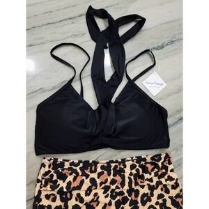 Grace Tempt Black Leopard High Waisted Bikini Large NWT