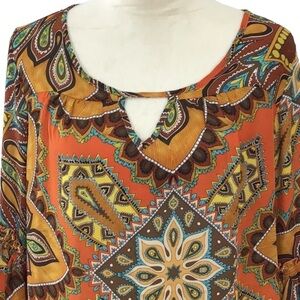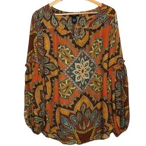 Grace The Perfect Fit Boho Paisley Balloon Sleeve Keyhole Blouse Size XL…
