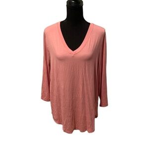 Grace The Perfect Fit v-neck long sleeve t-shirt in dusty rose. Viscose from bamboo blend. Women's size large. There is a spot along side seam but new with tags.