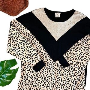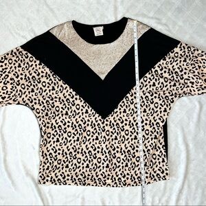 Grace and Emma Boutique Chevron Leopard Sequin Colorblock Top Jumper Size Large