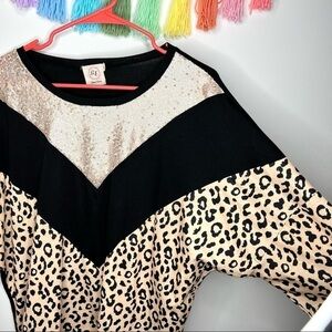 Grace and Emma Boutique Chevron Leopard and Champaign Sequin Colorblock Top Pullover Sweatshirt Jumper Size Large