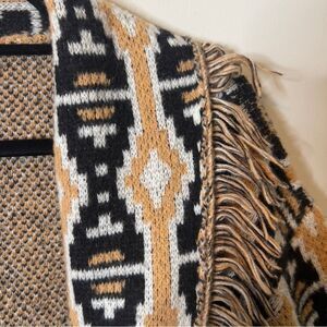 Grace and Karma Womens Cozy Aztec Fringe Boho Western Tribal Cardigan Sweater. Size 1X. Mustard/Tan, Black, White.
