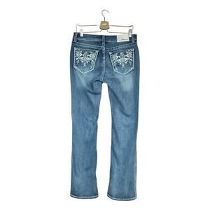 Grace in LA Women’s Jeans – Size 29 Easy Fit Bootcut. These medium wash denim jeans feature signature rhinestone bling and embroidered cross back pockets with contrast stitching for that bold Western cowgirl meets glam rock vibe.