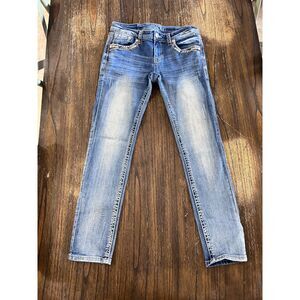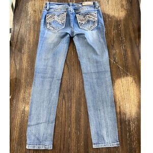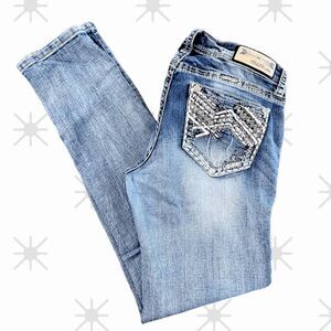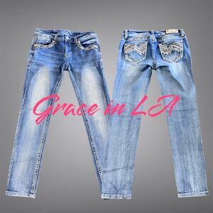 Grace in LA Blue Boot Cut Jeans with Embellished Pocket low rise EUC