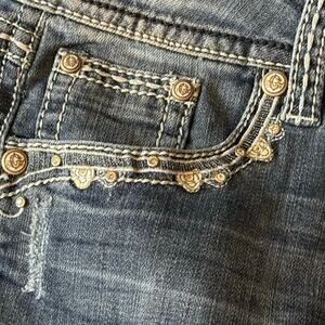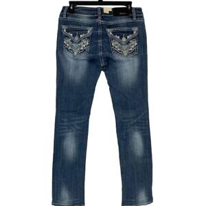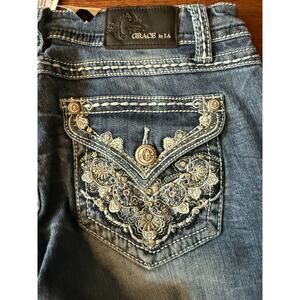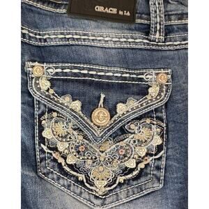 Grace in LA Embellished Straight Leg Jeans Denim Bejeweled Pockets Size 29