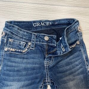 Grace in LA Embroidered Western Cowgirl Bootcut Dark Wash jeans Girl’s size 7