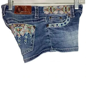 Grace in LA Jeans Womens 25 Blue Jean Short Shorts Embroidered Aztec Stretch