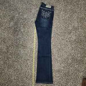 Grace in LA Women’s Easy Fit Mid-Rise Bootcut Jeans Feather Embroidery Bling Siz