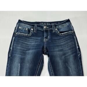 Grace in L.A. Women's Embroidered Bootcut Blue Denim Jeans - Size 27x26