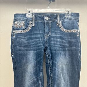 Grace in LA Women's Geometric Embroidered Embellished Bootcut Stretch Jeans 28