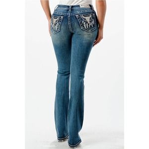 Grace in LA Women's Steerhead Feather Embroidered Pocket Bootcut Stretch Jeans