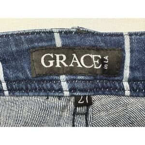 Grace in L.A. Women's Striped Flared Stretch Blue Denim Jeans - Size 27x32