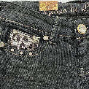Grace in LA Women's Y2K Stunned Rhinestone Skinny Jeans Size 0/23 Black NWT - Animal Print, Bling, Sparkle, Glam