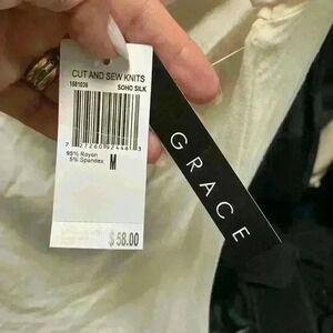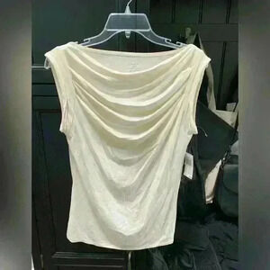 This NWT top is a size M. Color is ivory. The neckline is very flattering the way it drapes . Smoke free home.