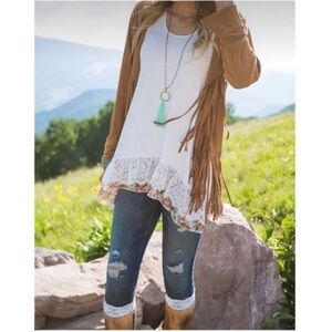Grace & lace hi low lace and foral hem long top size xs NWT