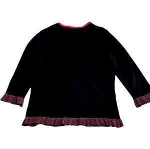Stripe black and pink ruffle on bottom hem and sleeve hem