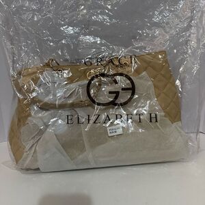 This purse is beige with gold tone. It has a GE logo on the front. Has many compartments and zippers. Handles have chain accents. Length is about 14.5”. This purse is big enough to hold a lot of stuff. Has been in original packaging. Only took out to take pictures for posting here.