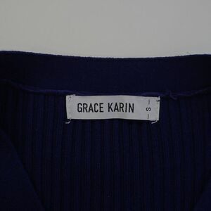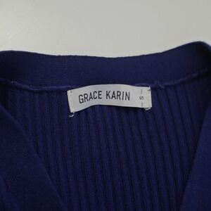 Grace Karin Small Blue Knit Cardigan Button Front Long Sleeve Sweater V-Neck