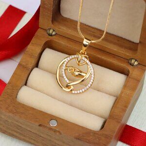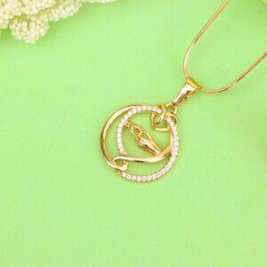 "Graceful Hand & Heart Rose Gold Pendant – Sparkling Circle Design, XPPT1554