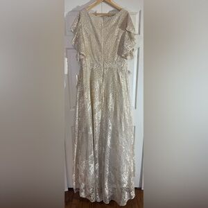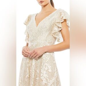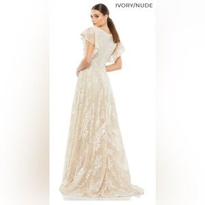 Graceful V-neck Evening Gown by Mac Duggal Style 20310 NWT in Ivory/Nude