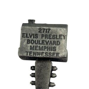 This vintage collectible spoon brings the spirit of Graceland and Memphis with its unique guitar design. Crafted in pewter, it captures the essence of Elvis Presley's legacy and serves as a charming piece for collectors and enthusiasts alike. The detailed craftsmanship and historical address make it a treasured keepsake.