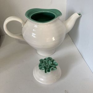 Graces Teaware Fine China White Teapot with Lid Teal Accents Trim 24 oz
