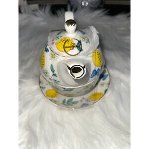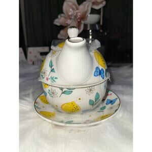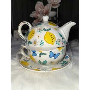 Grace's Teaware Lemons & Blue Butterflies Stacking Teapot & Teacup and Saucer