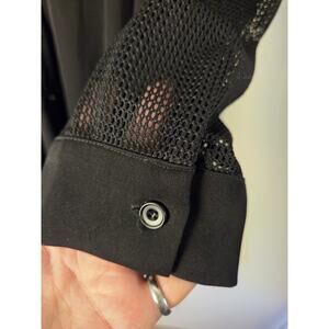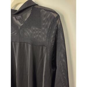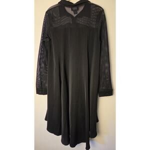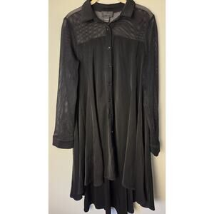 Gracia A-Line Long Sleeved Mesh Trim Shirt Dress Button Front Hi Lo Womens L