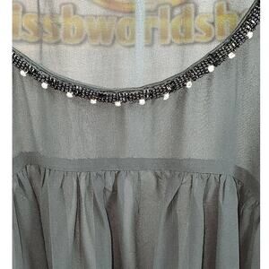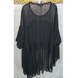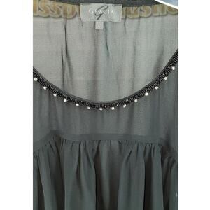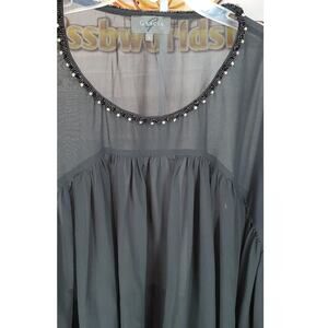 Gracia Black Sheer Hi-Low Blouse with Beaded Neckline Size L