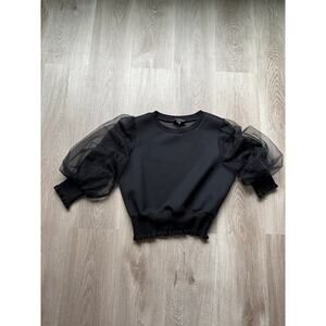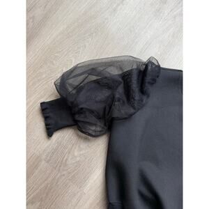 Gracia Black Tulle 3/4 Puff Sleeve Top, Women's size Small Lace