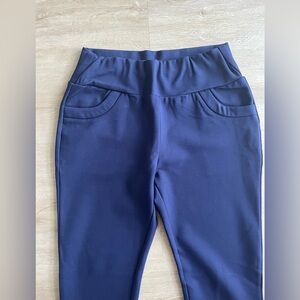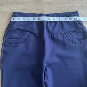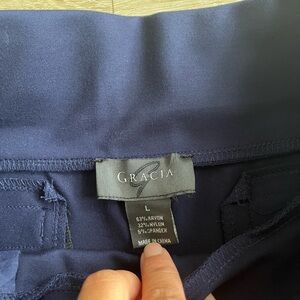 Gracia Blue Straight Leg Pull On Pants SZ L Elastic Waist Career Office Wear