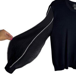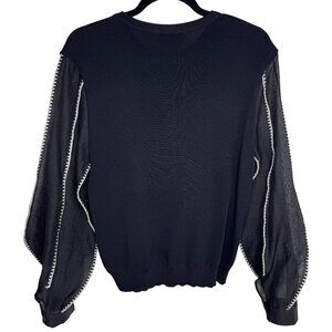 Gracia Dark Romantic Black Sheer Balloon Sleeve Maximalist Sweater Sz Large