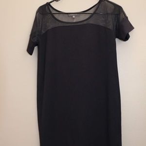 GRACIA Navy blue dress with mesh top on shoulders and thigh area. Very pretty dress. Good stretch cotton material.