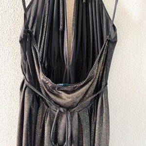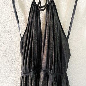 Gracia Fashion Black Gold Shimmery Halter Tie Dancing Dress for Night Out